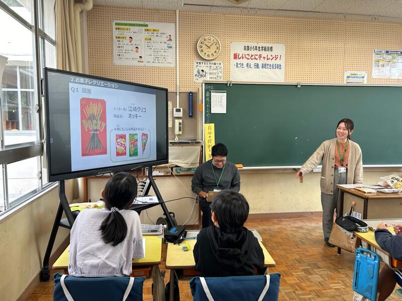 1つ目は、6年生と千葉県夏見台小学校とのZoom交流会です。この取組は、英語専科の安田先生(甲佐小)が企画したもので、「相手が住んでいる土地や郷土料理に興味・関心をもち日本全国に視野を広げること」「熊本の郷土料理を県外の小学生に伝えることで、熊本への郷土愛を深めること」「これまで学んだことを生かし、英語をとおして県外の児童との交流を行うことで、刺激し合い、英語に対する意欲・関心を広げる」の3つを目的として行われました。