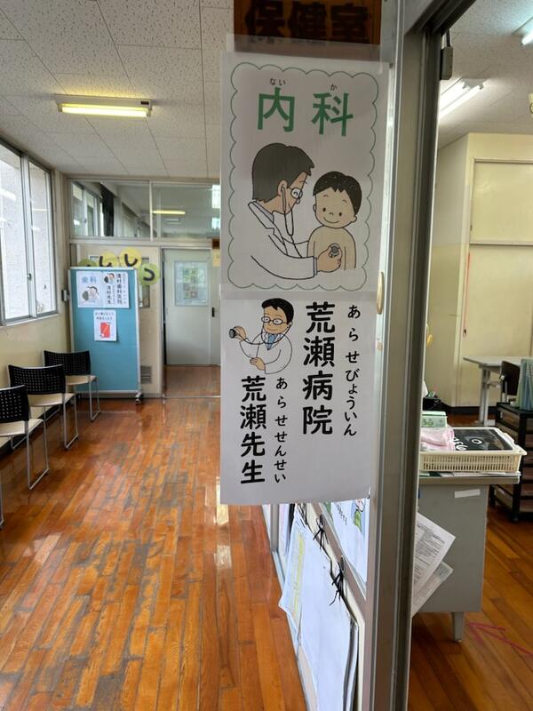 4時間目、廊下に出ると1年生がいました。様子を見ると視力検査があっていました。廊下にいる子も、保健室の中にいる子も、体育座りで静かに待っていました。これも、運動会の練習の成果だなあと感じたところです。