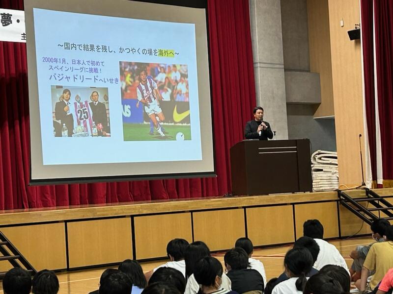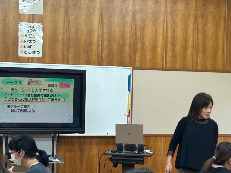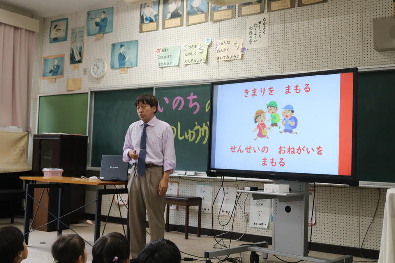 現在、梅野教頭先生、養護の道久先生、主事の松岡先生、事務の高橋先生のお話がありましたが、どの先生の話も、初めて知ることが多く、お互いを知るよい機会となっています。子供達も、大変興味深く話を聞いているようです。