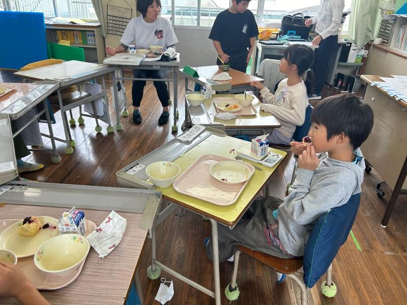 今日の給食は、保護者の方が用意してくださったお弁当!みんな笑顔でおいしそうに食べていました。早朝よりお弁当の準備、ありがとうございました。