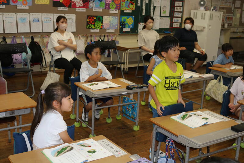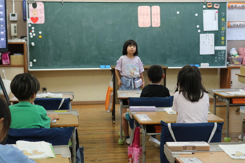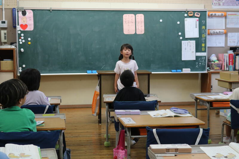 朝、職員室にいると、1年生2人が、「これから発表するので、1年生の教室に来てください。」と伝えてくれたので、早速1年生の教室に行ってみました。
