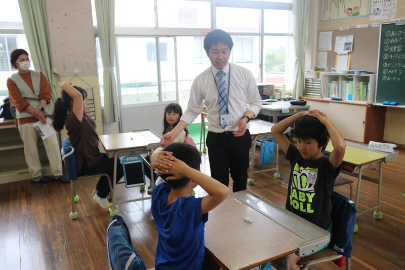 2時間目は、校長より、自分の命を守る大切な学習で、自分ごととして参加してほしいことを伝えました。その後、登校班で、横断歩道の渡り方の学習をしました。県内では、道路横断をする前に、確認をしないで渡ることで、5月の連休後から交通事故が多く発生しているそうです。岡田様からも、「車がとまってくれたかを確かめて、そして、渡っている間も車などをよく見ながら渡るように」とご指導いただきました。2時間目の終了時には、2年生児童が、3時間目終了時には、6年児童が代表としてお礼の言葉をしっかり伝えてくれました。