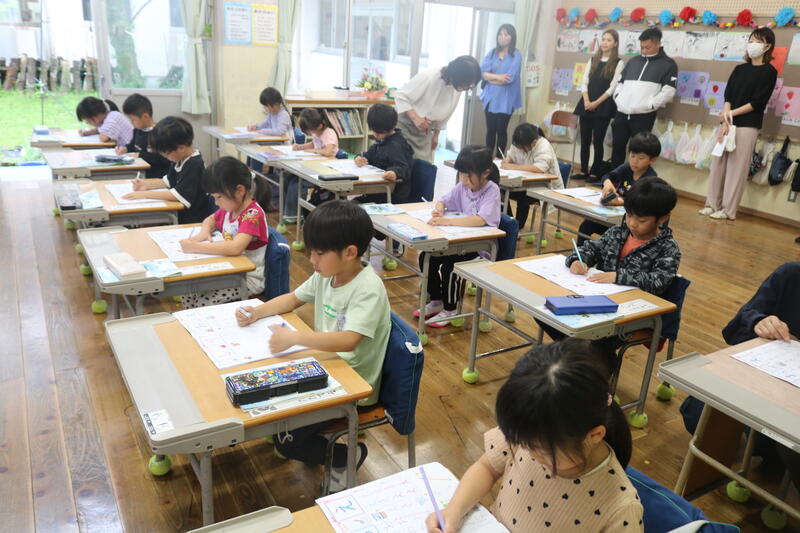 3年以上が学力調査を受けている時間、1年生では、小学校に入ってはじめて学習する国語の教科書を読む姿がありました。教科書を読む姿勢や、大きな声・小さな声などいろいろな読み方を教えてもらいながら、繰り返し、繰り返し、どの子も一生懸命、教科書を音読していました。こういった毎日の学習の積み重ねで、子供達に力がついていくのだと感じます。