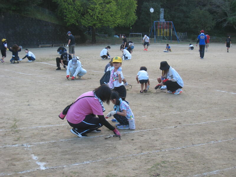 おかげで、開始前とは比べものにならないくらいきれいな状態になりました。町陸上記録会や運動会が控えている中、とっても助かりました。1年生のみなさん、ありがとう!!