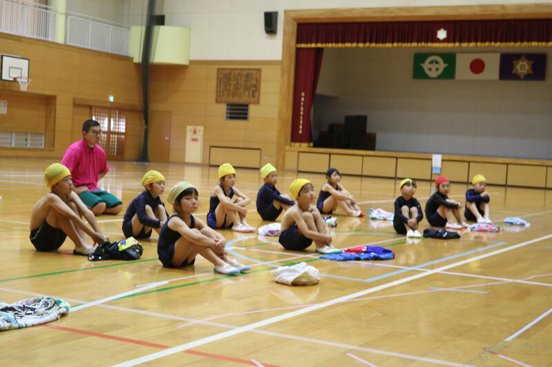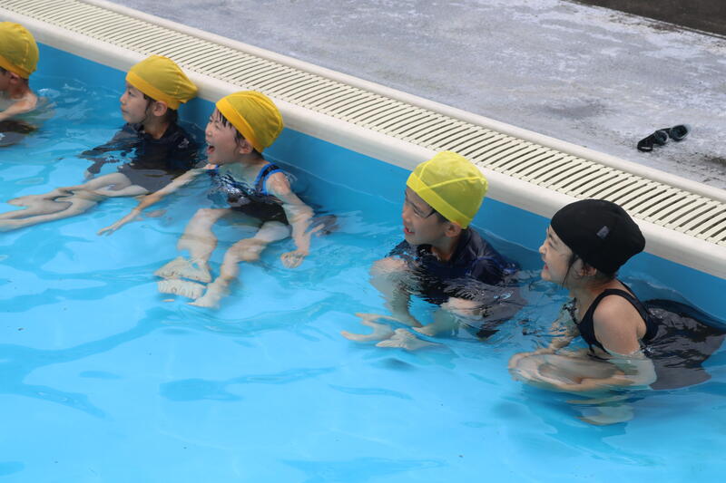 プールでの学習は、低学年では、目をあけたりもぐったり、浮いたり、中学年から浮く・泳ぐ運動を学習しますが、自分の命を守るためにも必要な学習です。安全な学習になるよう、先生達も複数で指導を行うようにしているところです。