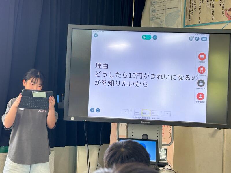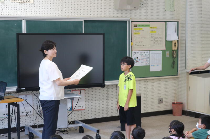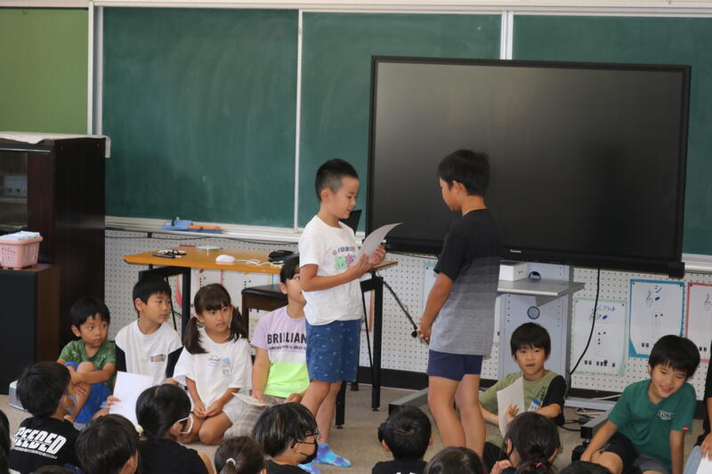 朝、職員室にいると、1年生2人が、「これから発表するので、1年生の教室に来てください。」と伝えてくれたので、早速1年生の教室に行ってみました。