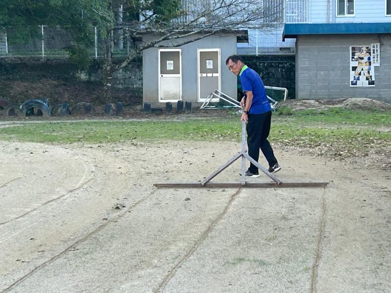しかし、正午頃には、本日の午後~明日終日にかけて、降水確率も0%の予報に変わり、運動場も少しずつかわいてきました。(今日はずっと、天気予報とにらめっこでした)
