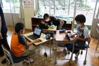 月曜日の2・3・4校時に、ICT支援員にも授業に入っていただき、第4学年~第6学年の学級でプログラミングに関する授業が行われました。