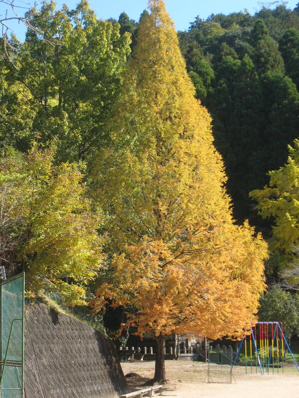 ということです。全体像は杉のような形をしており、今、赤く色づきとてもきれいです。ぜひ、お近くに来られた際は、ご覧になられてください。また、トップページの写真もこのメタセコイア奥に校舎が見える写真に変えています。