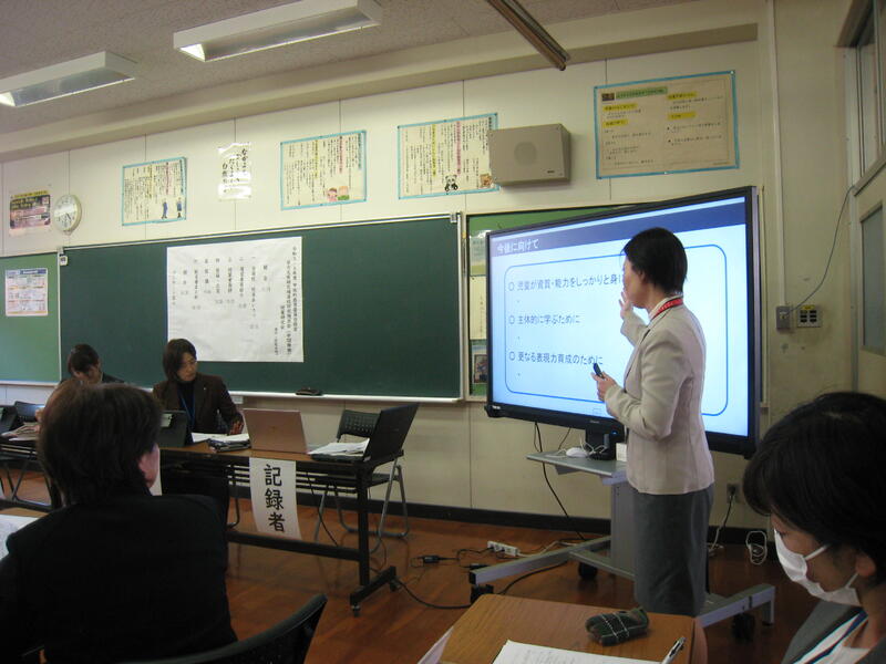 5年生の子どもたちは、たくさんの参観者の方々の前で、資料を用いた文章の効果について考え、考えを交流したり全体に伝えたり、終始意欲的に学習に取り組んでいました。授業後の研究会では、本校の取組や子どもたちの姿にたくさんのお褒めの言葉をいただきました。また、今後さらに取り組んでいくこと等についても貴重なご意見を多数いただきました。研究発表会を通して学んだことを今後さらに職員で深め、子どもたちに返していきたいと思います。