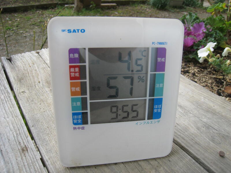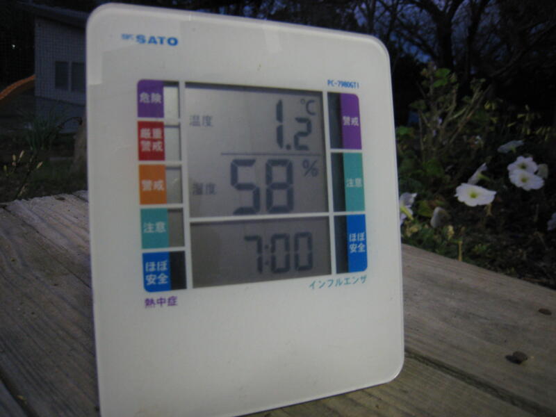 昨日午後から気温が下がってきて、本日から明日にかけてかなり冷え込む予報が出ています。下の2枚の写真は、今朝7時と午前10時の職員室外に置いている温度計です。まさに、『冷蔵庫の中』を思わせる気温となっています。
