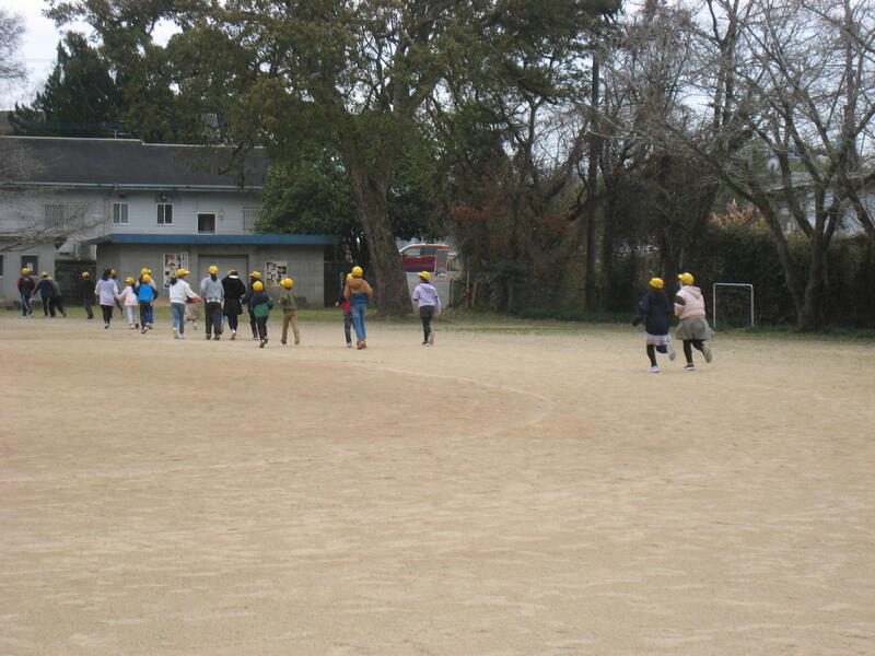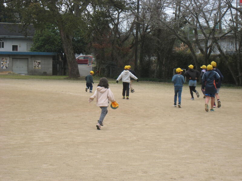 初日ということで、どうかな? と思いつつ、運動場を眺めると、たくさんの子どもたちが、楽しそうにランニングに励んでいました。よ~く目をこらして見ると、先生方も子どもたちといっしょに取り組んでいる姿が。