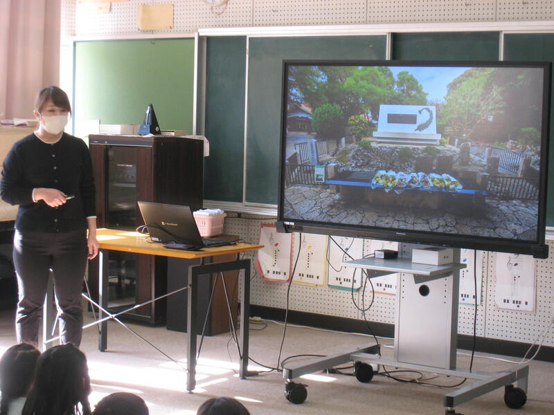 本日、2月6日(火)が本年度最後の集会でした。集会では5年生担任の内田先生が、大学時代に通われていた沖縄県で約80年前に起こった戦争で多くの方々が亡くなられたことやその中で子どもたちがどんな生活をしていたのかについて映像をもとにお話をしてくださいました。また、そのときに起こった熊本地震に際して、熊本へ戻ることもできず思案に暮れていた中で、自分にできることを考え行動を起こしたこと等々についてお話をされました。