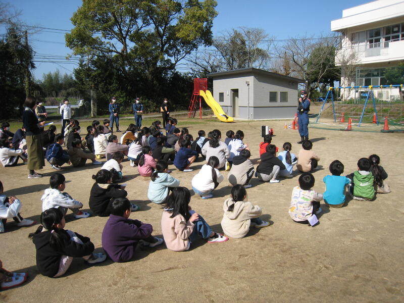3月7日(木)の2校時に今年度最後の避難訓練(火災)を行いました。この日は、『理科室』から出火したという想定での訓練でした。上益城消防組合消防本部より3名の消防士の方々に来ていただき、避難の様子を見ていただいたり消化器の使い方等についてお話をしていただいたりとても貴重な時間となりました。