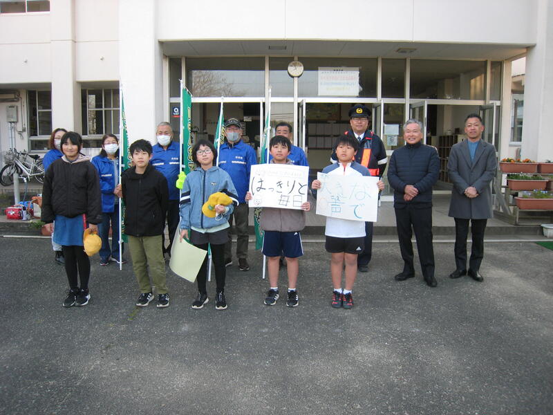 今日3月15日(金)は、学校運営協議会の皆様による朝の『あいさつ運動』でした。本日は、学校運営協議会の皆様の他にも民生委員の方々もいっしょに参加して下さり、また、 田上 浩輝 甲佐町教育長様も来て下さいました。