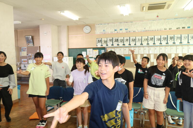 千葉県の6年生は、「ディズニーランド」、「ディズニーシー」、「バスケットボールの千葉ジェッツ」などを紹介して、白旗小の6年生は、「馬刺し」「日本一の石段」「くまもん」等を紹介しました。最後は全員で英語でじゃんけんをして素敵な交流を終えました。