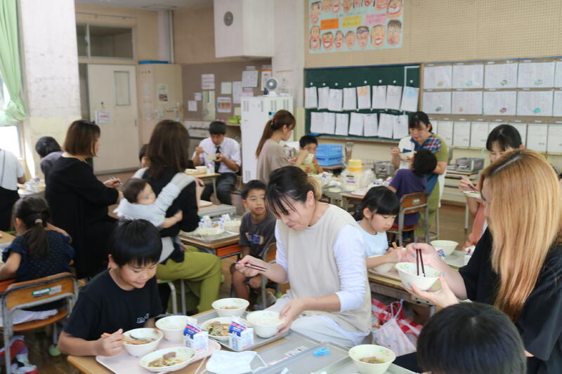 今日の給食は、保護者の方が用意してくださったお弁当!みんな笑顔でおいしそうに食べていました。早朝よりお弁当の準備、ありがとうございました。