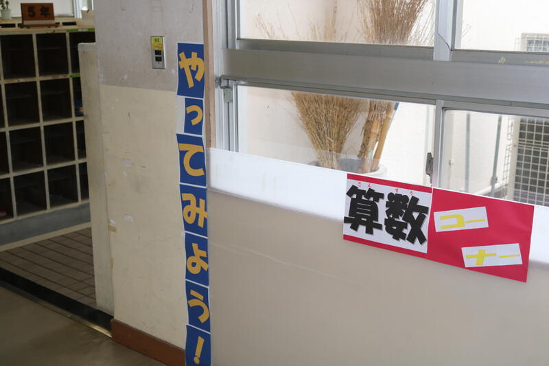 これは、本校の課題をもとに、先生方の発案で、児童が楽しみながら語彙力をつけたり、算数への意欲を高めたりすることができるように設置したものです。本校職員の子供達のために頑張る意欲にも感心です。