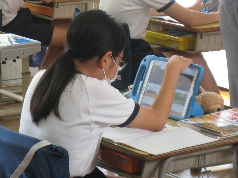 子どもたちは、金閣と銀閣をもとに、タブレット等を活用し、共通していること・異なるところについて調べ・話し合い・まとめていきました。個人で調べたことをペアで確認したり、全体で共有したりと主体的な学習が見られました。終始落ち着いた学習態度で、さすが6年生といった授業でした。