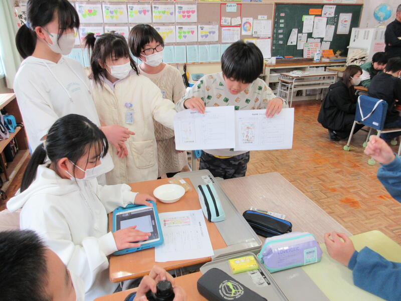 5年生では、総合的な学習の時間に『木村のあられプロジェクト』という学習を進めています。以前もお伝えしましたが、田植えから稲刈りまでを木村のあられさんと共に行い、収穫したもち米であられをつくり商品化します。このあられの味やパッケージデザインを子どもたちが考えます。