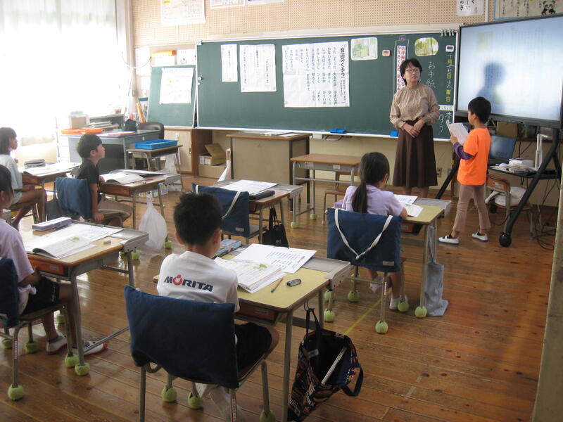 本日の2校時、甲佐町教育委員会より竹田指導主事 様が来校され、2年生の国語の授業を参観されました。授業が始まる少し前に教室に向かうと、すでに教科書を開いて音読をしていた2年生。竹田先生と私が教室に入ってきたのに気付くと、元気よくあいさつをしてくれました。
