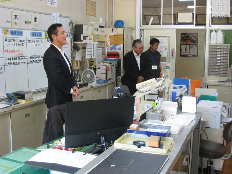 本日、9月1日付けで甲佐町長に就任された 甲斐高士 様 が田上教育長 様、後藤社会教育課長 様の3名で先生方へのごあいさつに来校されました。