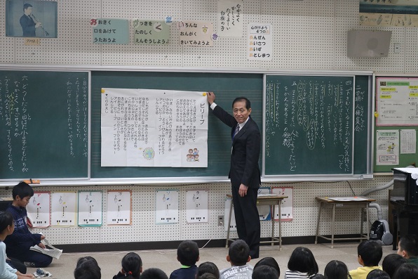 白旗小全校児童で、「みんなが仲良くするためにどうするのか」真剣に考えた人権集会でした。