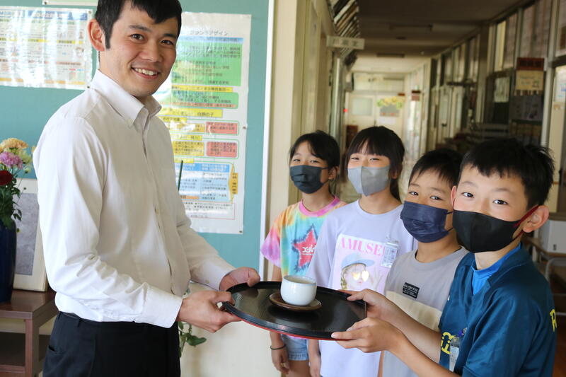 4時間目に、「校長先生!」と5年生の数名が校長室に訪ねてきてくれました。「家庭科で、お茶を入れたので飲んでください!」と笑顔でもってきてくれました。