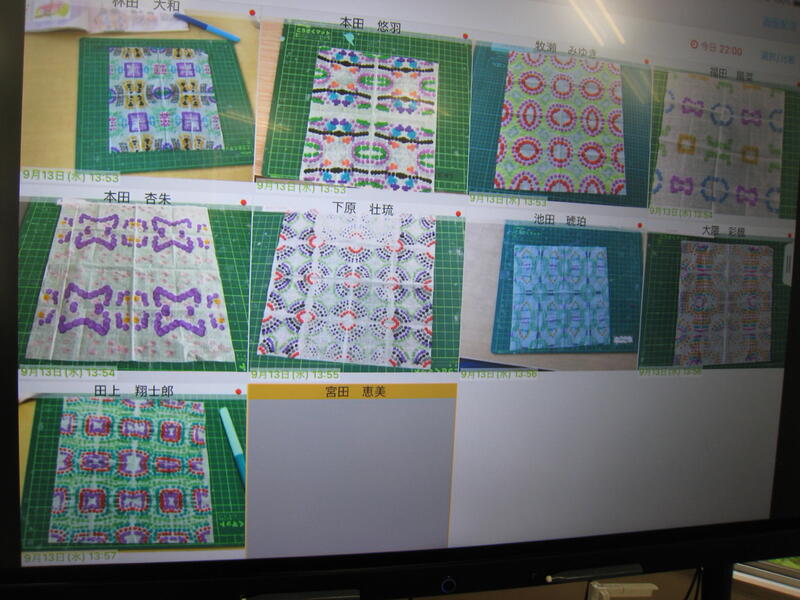 素敵な模様がティッシュ全体に広がっています。子どもたちは、それをタブレットで撮影し、教室の電子黒板に・・・! さすが今の子どもたち。