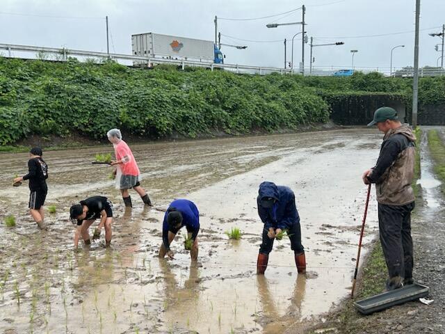 以前からお世話になっている糸田の芦原さんの田んぼをお借りし、JAの青壮年部の方に指導していただきながら、雨の中ではありましたが、田植えを行うことができました。これからの稲の生長が楽しみです。