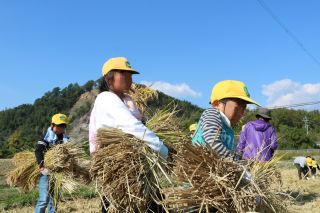初めての稲刈りだった子、2回目だった子など、経験は様々ですが、子どもたちは楽しそうに自分たちが植えた稲を刈り取ることができました。