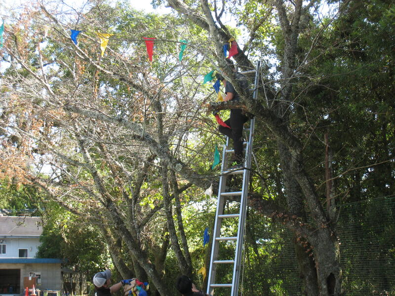 【入退場門設置】 【髙野PTA会長自ら高所に】 【子どもたちも一生懸命】