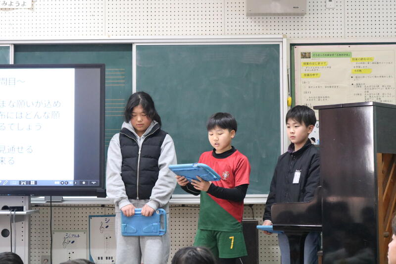 1時間目、千葉県の船橋市の夏見台小学校の6年生とオンライン交流を行いました。「You can see~」等の表現を使い、熊本の魅力を紹介しました。