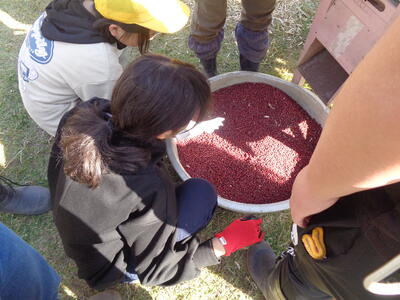 初めて小豆の種まきをする児童もいましたが、教えていただきながら種まきができました。