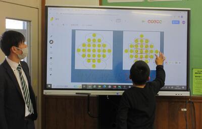 「分数×整数」の計算の仕方について真剣に考え説明する6年生の「主体的に学ぶ」姿は、蘇陽南小学校が目標としている「夢の実現を目指す児童」の姿でした。