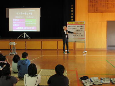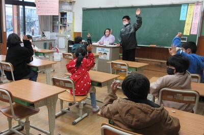 山都消防署蘇陽出張所から3名の方を講師に迎えて、5.6年生の救急救命訓練を行いました。