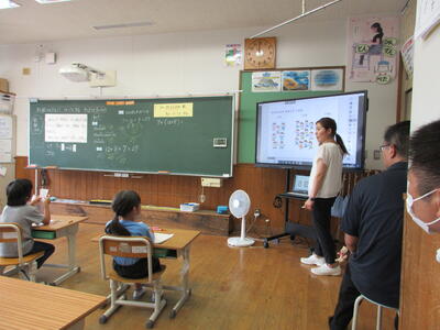 3時間目に6年生の算数「分数をかける計算を考えよう」の研究授業が行われました。