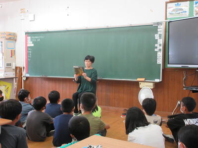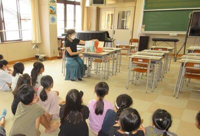 図書委員会の上級生が、紙芝居や絵本の読み聞かせをしてくれます。下級生はとても楽しみにしている様子です。