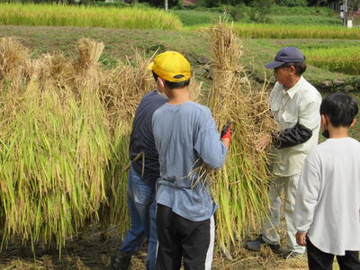 このあと、かり干し、脱穀、精米と行っていきます。調理(餅つき?)が楽しみです。