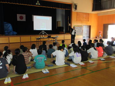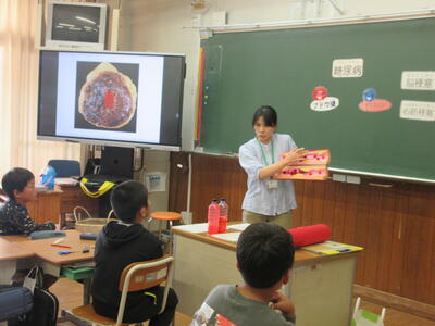 歯科衛生士さんに来ていただいて、お口の中の健康や歯みがきについて教えてもらいました。