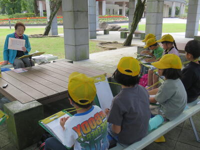 今年の農園活動として、3,4年生は菅尾地区シニアクラブと大野地区シニアクラブの皆さんのご協力を得てさつまいもの苗植えを行いました。