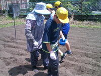 長崎シニアクラブの皆様のご協力を得て、今年も6年生が小豆の種まきを行いました。