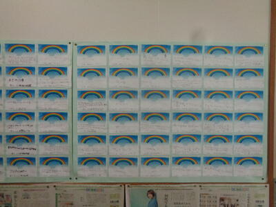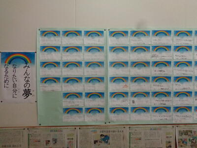 考えた夢を書いてもらいました。今校長室前の廊下に掲示しています。
