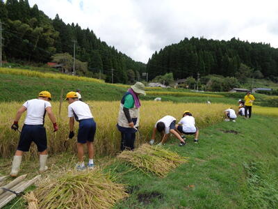 このあと、かり干し、脱穀、精米と行っていきます。調理(餅つき?)が楽しみです。