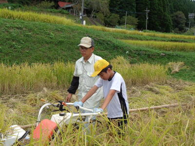 はじめはなれない様子でしたが、だんだん要領よく刈り取りを行っていました。