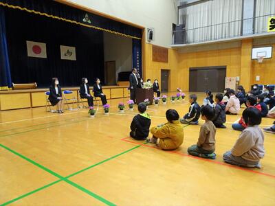 図書委員会の上級生が、紙芝居や絵本の読み聞かせをしてくれます。下級生はとても楽しみにしている様子です。