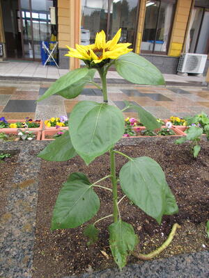 なんと、学校の花壇にひまわりが咲いているで