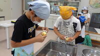 ジャガイモとほうれん草を茹でました。初めてジャガイモの皮むきをする子もいてドキドキワクワクの調理実習になったようです。