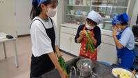 5年生が、家庭科の学習で「ゆで野菜」の調理を行いました。