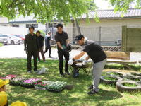 馬見原町づくり協議会の方々に来ていただいて、1,2年生が「フラワーポット大作戦」を行いました。